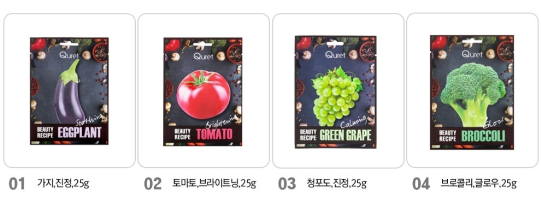 한 장당 25g 용량에, 가지·토마토·그린그레이프·브로콜리까지 구성이 나뉘어 있는 점도 선택 이유 중 하나였어요. 데일리로 사용하기에 적당한 마스크팩일지 궁금해서 직접 사용해 봤고, 오늘은 큐릿 뷰티 레시피 마스크 후기를 정리해보려고 해요, 만족.